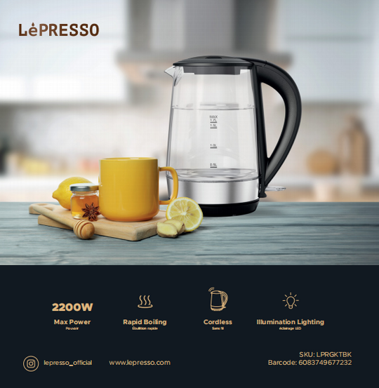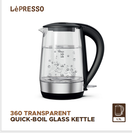 Lepresso Fast Boiling Clear Glass Kettle