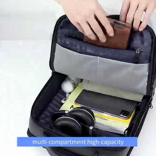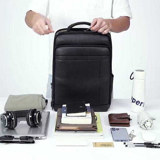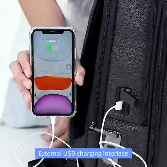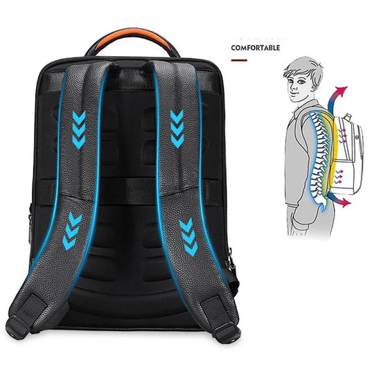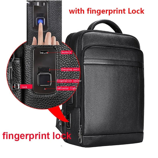 Men's Backpack with Fingerprint Lock Genuine Leather 15.6 inch