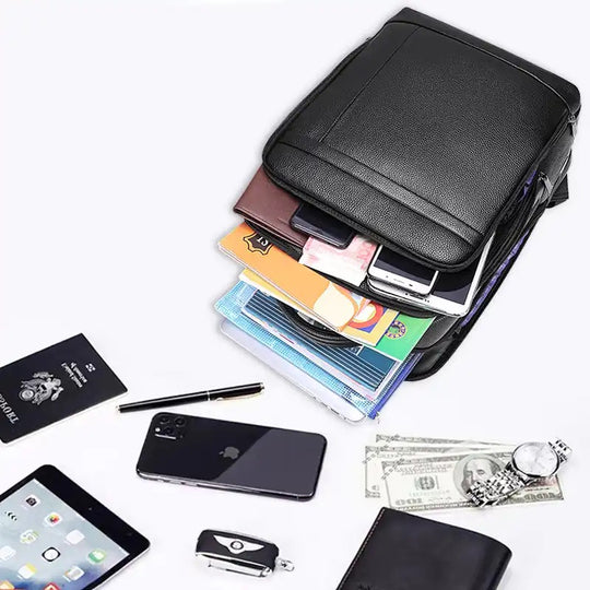 This Genuine Leather Men's Backpack with Fingerprint Lock is an ideal choice for men who need to carry their laptops and personal items safely and in style. It is designed to provide comfort, security and durability...Sale price AED 395.00Regular price AED 445.00 -