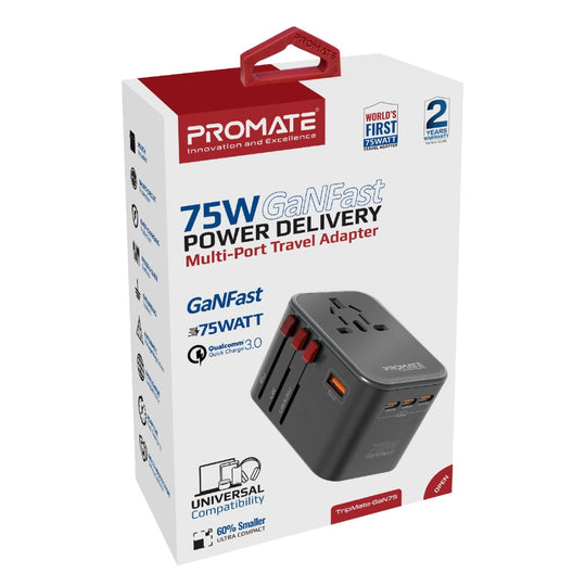 Promate 75W GaNGast Multiport Travel Charger