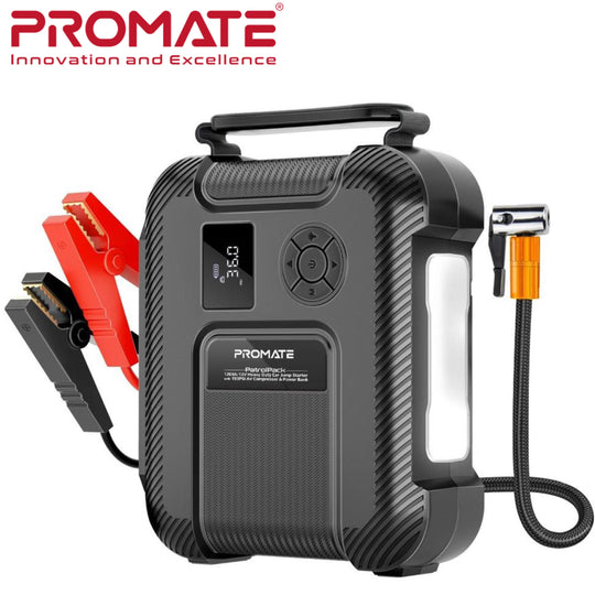 Promate 4 in 1 1200A/12V Heavy Duty Car Jump Starter 150Psi Air Compressor with 16000mAh Power Bank