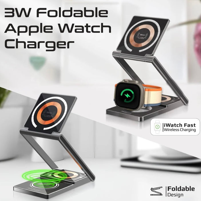 Introducing LucidFold-Trio, the ultimate 3-in-1 charging station to simplify your charging experience. MagSafe compatible, this innovative device features a 15W foldable wireless phone charger, a 5W wireless charger for AirPods, and a foldable wireless charger.