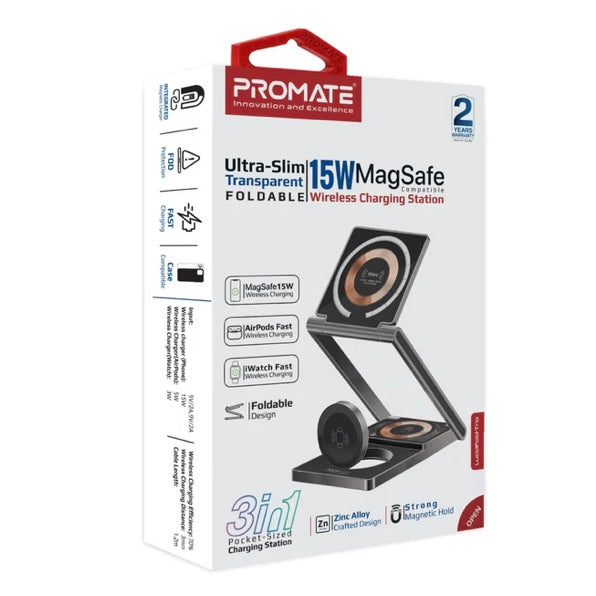 LucidFold-Trio Ultra-Slim 15W MagSafe Compatible Transparent Foldable Wireless Charging Station by PROMATE