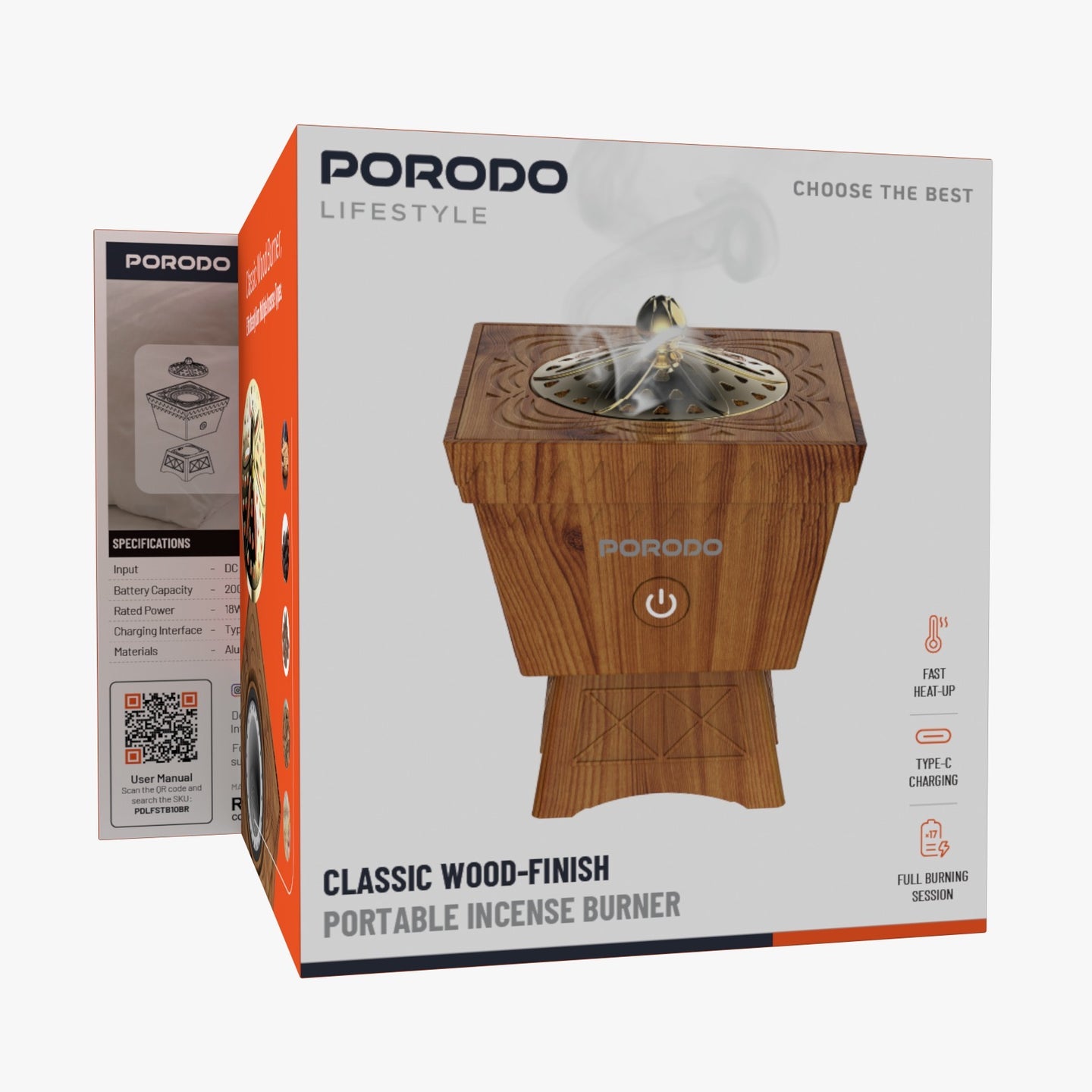 استمتع بأجواء فاخرة وراحة نفسية مع مبخرة Porodo المحمولة بتشطيب خشبي كلاسيكي، المصممة لتمنحك تجربة بخور عصرية وآمنة بدون فحم. تجمع المبخرة بين التصميم الأنيق المستوحى من الخشب والتقنية الحديثة، لتوفر تسخينًا سريعًا وتشغيلًا هادئًا يناسب المنزل أو المكتب أو أثناء السفر.