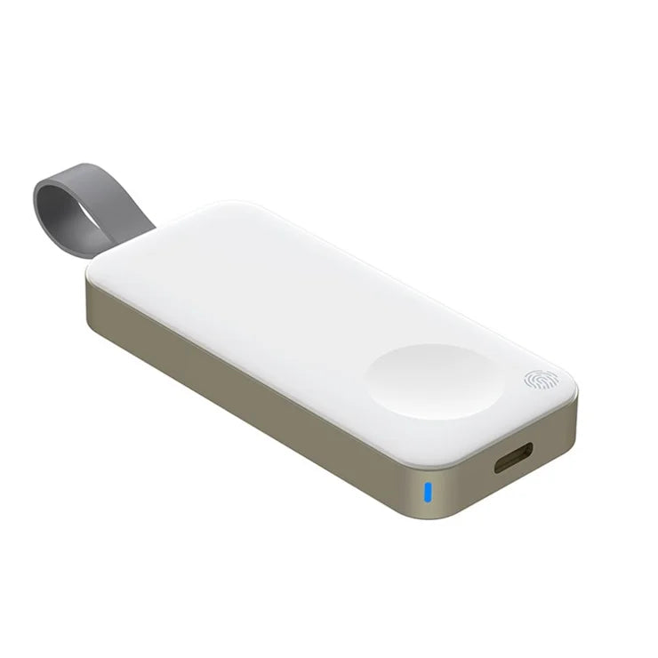 WIWU WI-M19 ELFIN WATCH WIRELESS CHARGER Designed for convenience and safety, the aluminum alloy body and ABS/PC shell provide a durable and reliable charging experience. It is equipped with a 1200mAh polymer battery, TYPE-C interface, and a silicone rope. When charging, the blue light will pulse, and when the battery is low, the red light on the edge will flash. The advanced foreign object detection system starts working with blue light breathing after 30 seconds/each time. Comes with a 1-year warranty.