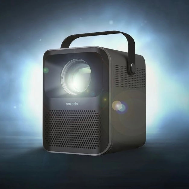 Portable battery projector from Porodo. It is characterized by high quality, light weight and ease of carrying. It gives you a clear display and vision with an image resolution of up to 1080 pixels HD. With its elegant and modern design, it will give you a wonderful cinematic experience at home and enable you to watch movies and enjoy parties.