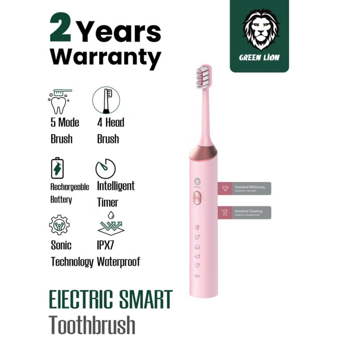 Green Lion Electric Toothbrush with 5 Modes and 4 Brush Heads, Suitable for Sensitive and Colored Teeth