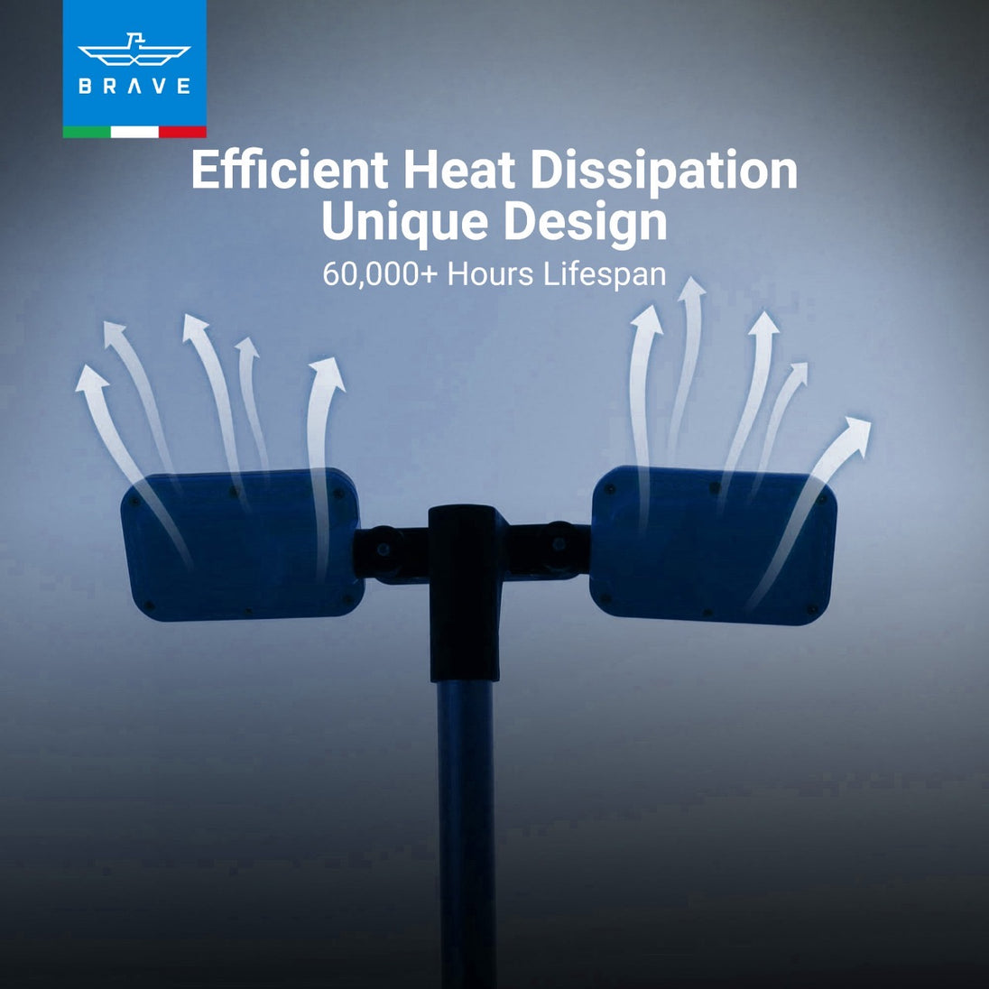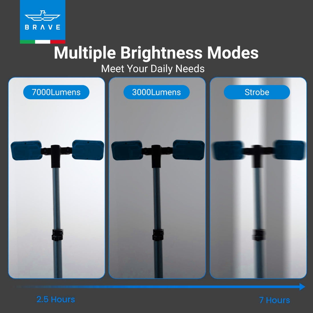 The BRAVE Foldable Light delivers up to 7000 Lumens, with an adjustable height up to 215 cm and dual rotatable panels (180° & 270°).