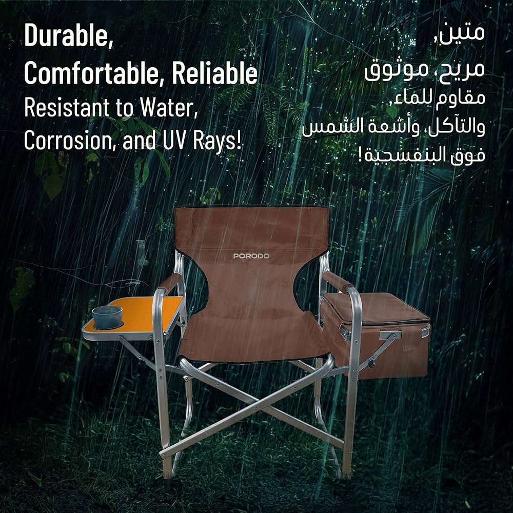 استمتع بالراحة أينما كنت مع كرسي Porodo Director Chair المصمم للاستخدام الخارجي. يجمع بين المتانة والراحة بتصميم عملي قابل للطي، مع طاولة جانبية مدمجة وحقيبة تبريد معزولة لحفظ المشروبات. مثالي للتخييم، الرحلات، الشاطئ، والحدائق، مع هيكل قوي يتحمل حتى 120 كجم ويوفر تجربة جلوس مريحة في كل الأوقات.