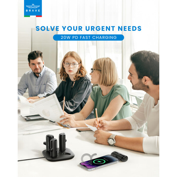 *استمتع بأقصى درجات الراحة في شحن عدة أجهزة بطريقة لاسلكية مع محطة شحن Brave 5000mAh x 4، مما يضمن أن تبقى أجهزتك مشحونة أينما كنت.*