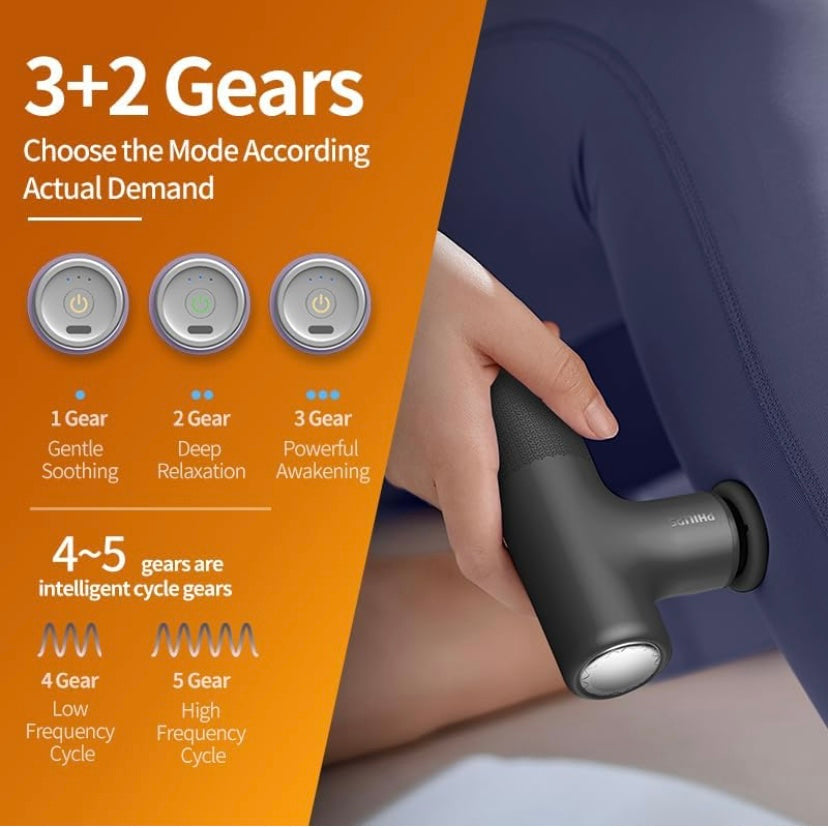 مسدس التدليك محمول خفيف الوزن (236 جرام)، مع 2 رأس بديل، 5 أوضاع للتدليك PHILIPS PPM7311