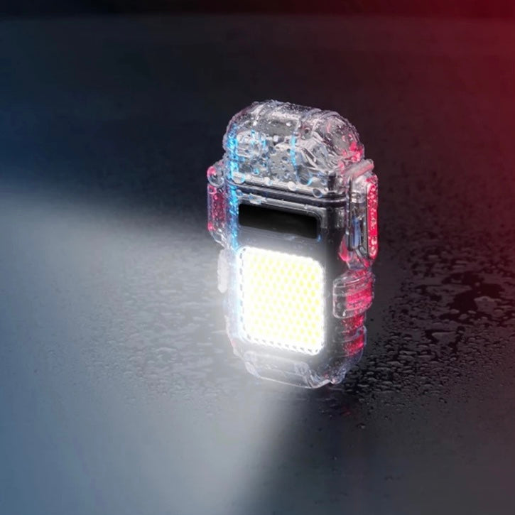 ولاعة كهربائية متينة وعملية بدون غاز، مع إضاءة كشاف مدمج ومقاومة للماء.