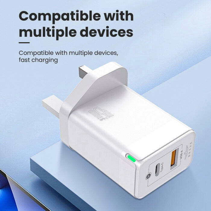 - يستخدم تكنولوجيا النتريد الغاليوم (GaN) لتحسين الكفاءة وتقليل حجم الشاحن.