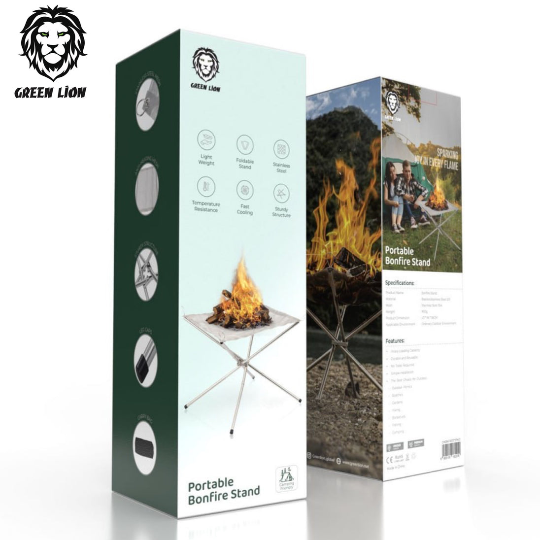 Green Lion Portable Bonfire Stand هو حامل نار محمول مصمم خصيصًا لإنشاء جو من الهدوء والدفء أثناء الاستمتاع بالنيران في الهواء الطلق. يتيح لك هذا الحامل ترتيب النار بطريقة آمنة ومستقرة، سواء كنت في حديقة منزلك أو خارجها في رحلة تخييم.