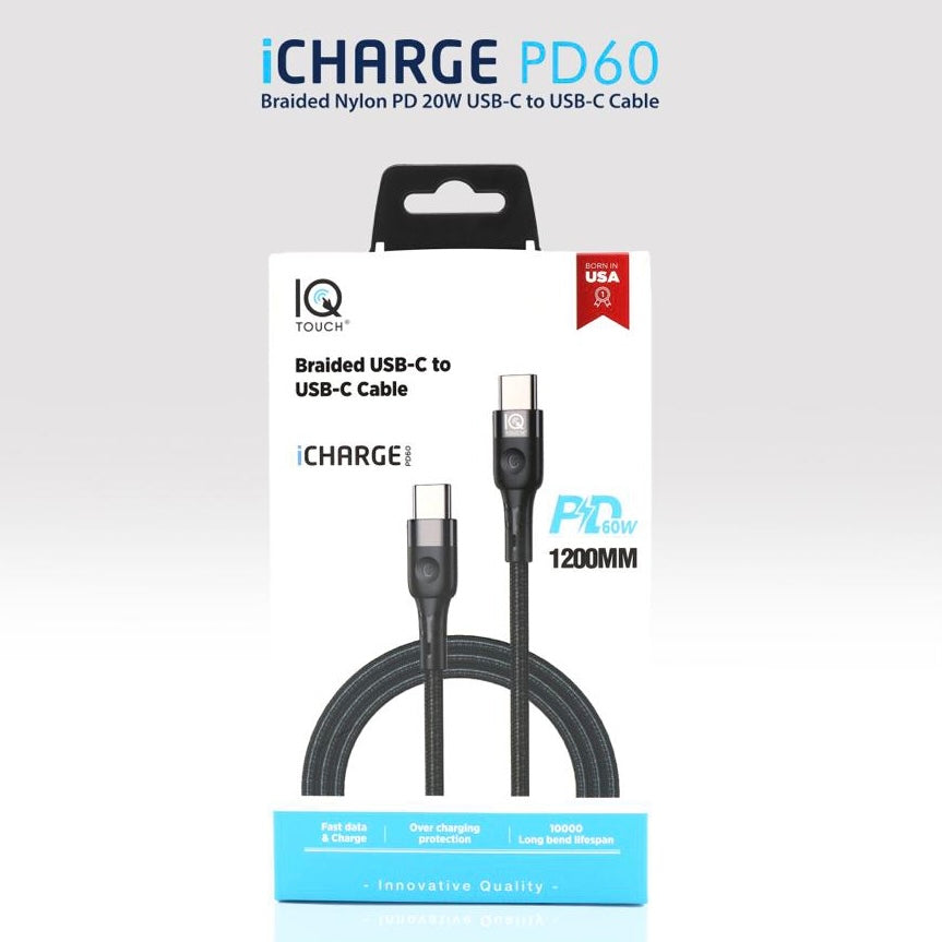 *IQ TOUCH iCharge PD60 Braided Nylon Cable يضمن لك شحنًا سريعًا وآمنًا، مع تحمل قوي ومواد عالية الجودة.*