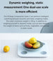 1. تحليل تكوين الجسم: يستخدم الميزان تحليل المقاومة الكهربائية الحيوية لقياس نسبة الدهون في الجسم، وكتلة العضلات، ومؤشر كتلة الجسم (BMI)، والأيض القاعدي، ومؤشرات أخرى مهمة لتكوين الجسم.