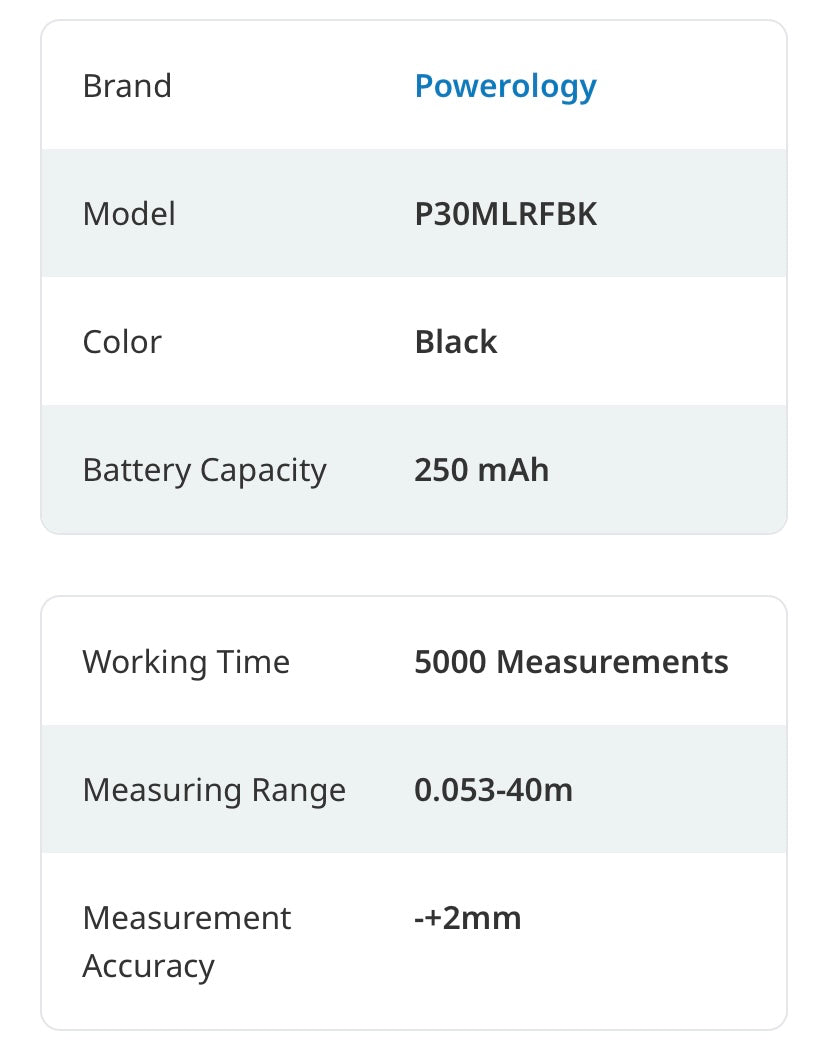 أداة قياس الليزر الذكية للمسافات حتى 30 متر من POWEROLOGY